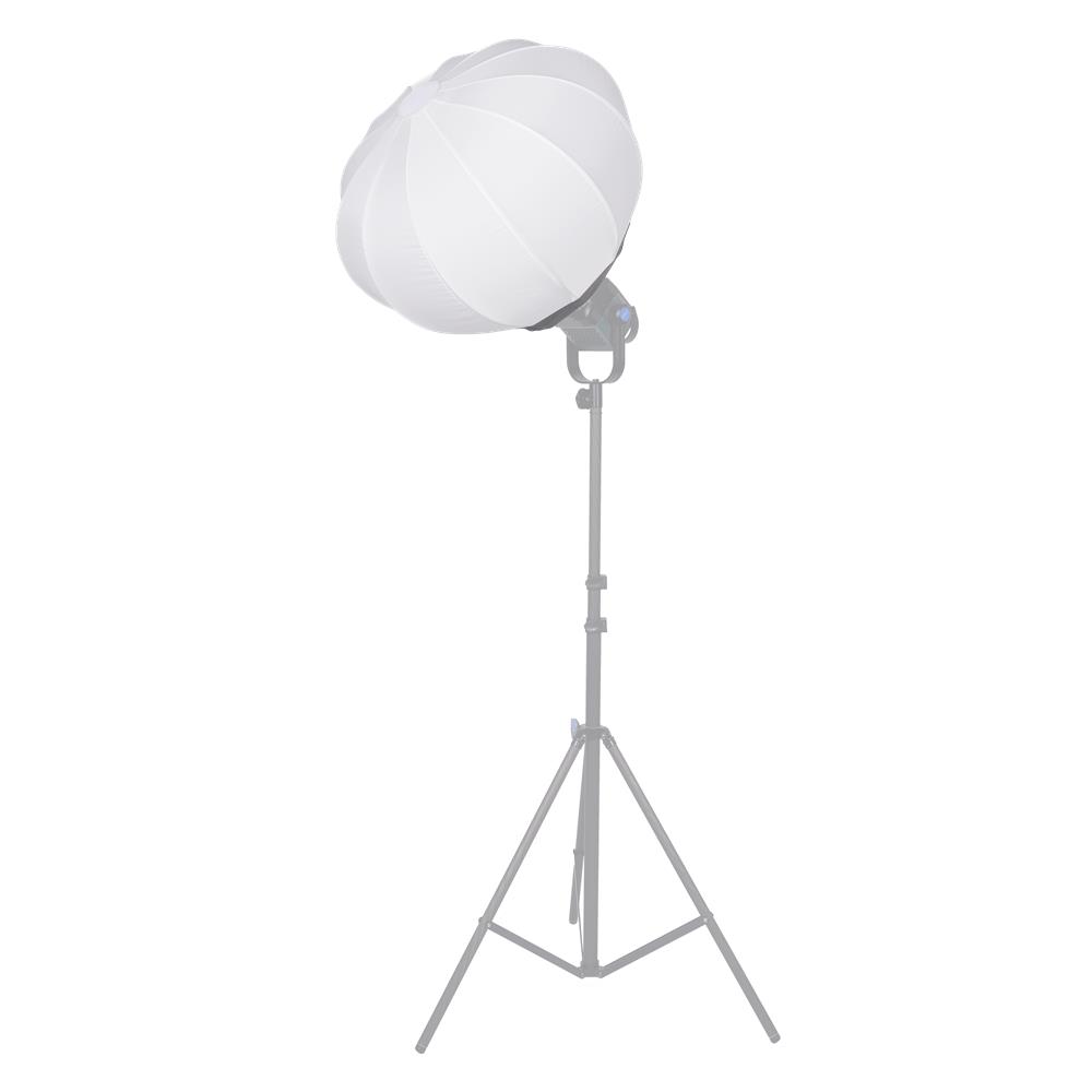 You use the softbox to soften light. Because the softbox has a balloon shape, it provides a wide diffusion. Special diffusion materials ensure that light is uniform over the entire surface of the softbox. Without hotspots. The diameter of the softbox is 62cm. The depth is 55 cm. The adapter ring is interchangeable and has a diameter of 129mm.