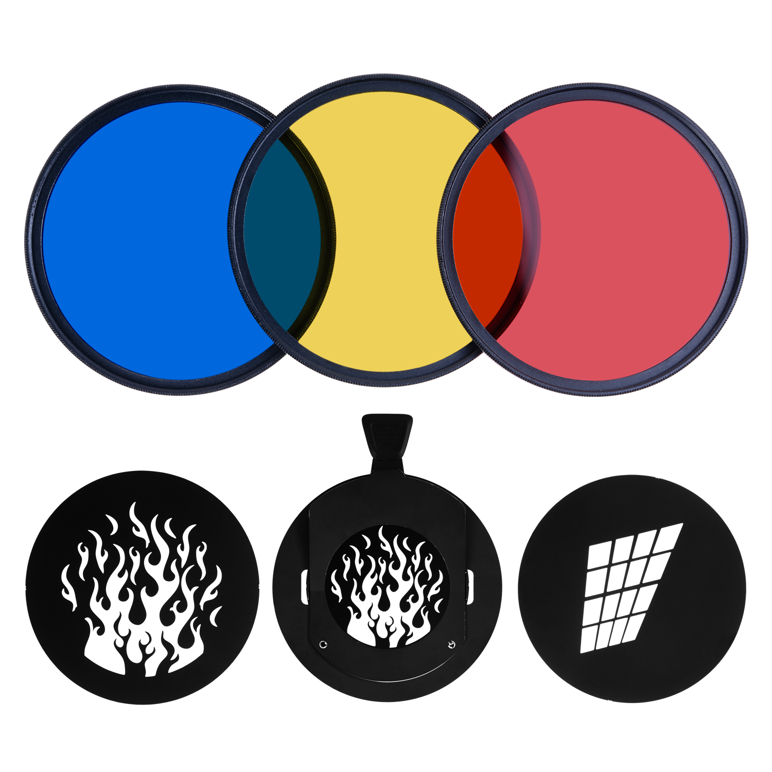 Inspireer uw creatieve opnamen met verbazingwekkende lichteffecten. Levering is inclusief 15 GOBO-patronen, met daarbij drie filters – rood, geel en blauw. U heeft de vrijheid om de vorm en grootte van het licht te veranderen. Eindeloze mogelijkheden!